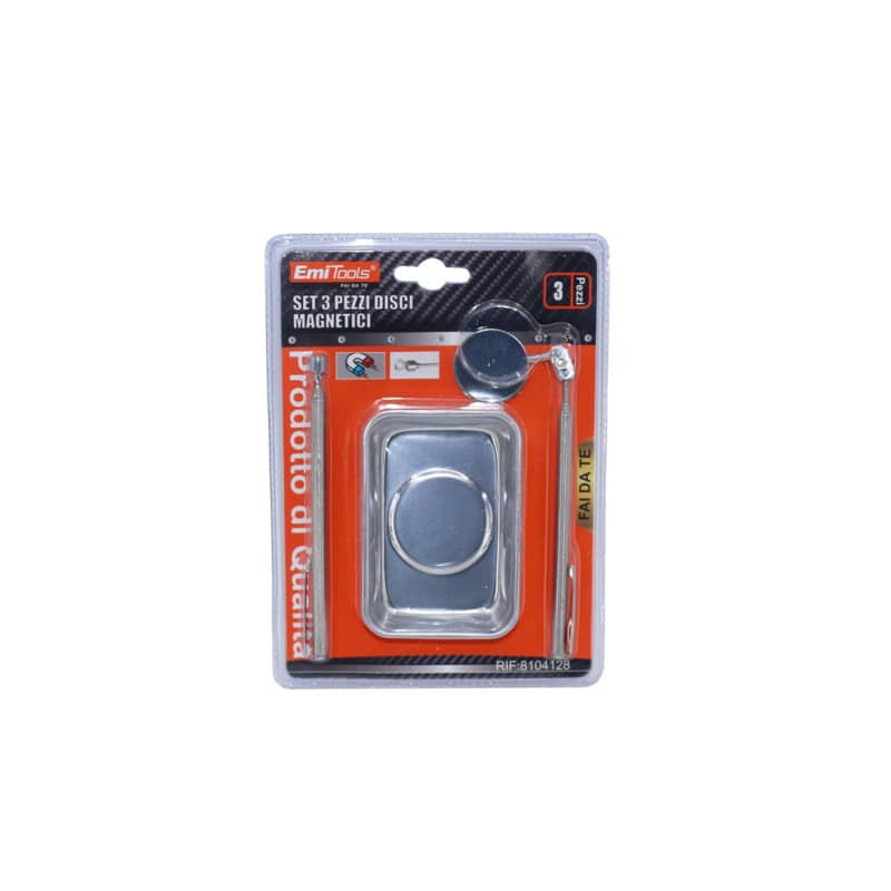 Kit per il recupero di piccoli oggetti. Composto da: piatto magnetico contenitore - specchietto di servizio - puntale a calamita.