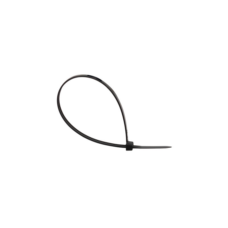 Fascette in nylon di base per cavi con gancio e anello da usare una sola volta. Perfette per fissare/legare/tenere insieme gli oggetti. Colore: nero. Materiale: Nylon V-2 infiammabilità. Resistente ai raggi UV. Temperature di esercizio: da -40°C a +80°C. Confezione composta da 100 fascette in busta di polietilene.