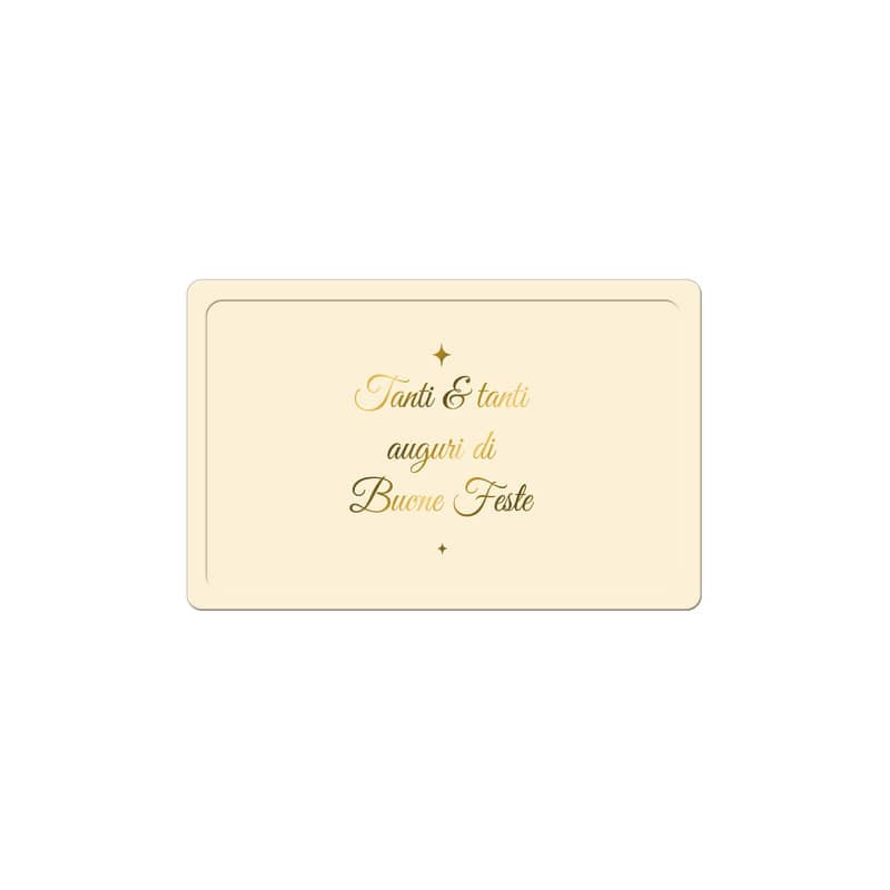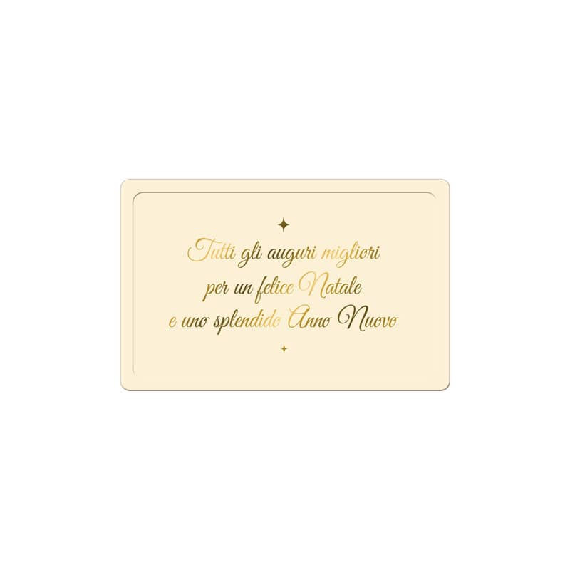 Biglietti augurali natalizi a vassoio a due ante cm 9x14 con busta in tinta - cartoncino di colore avorio con scritte differenti in oro, ideali per augurare un sereno Natale. In confezione da 6 biglietti.