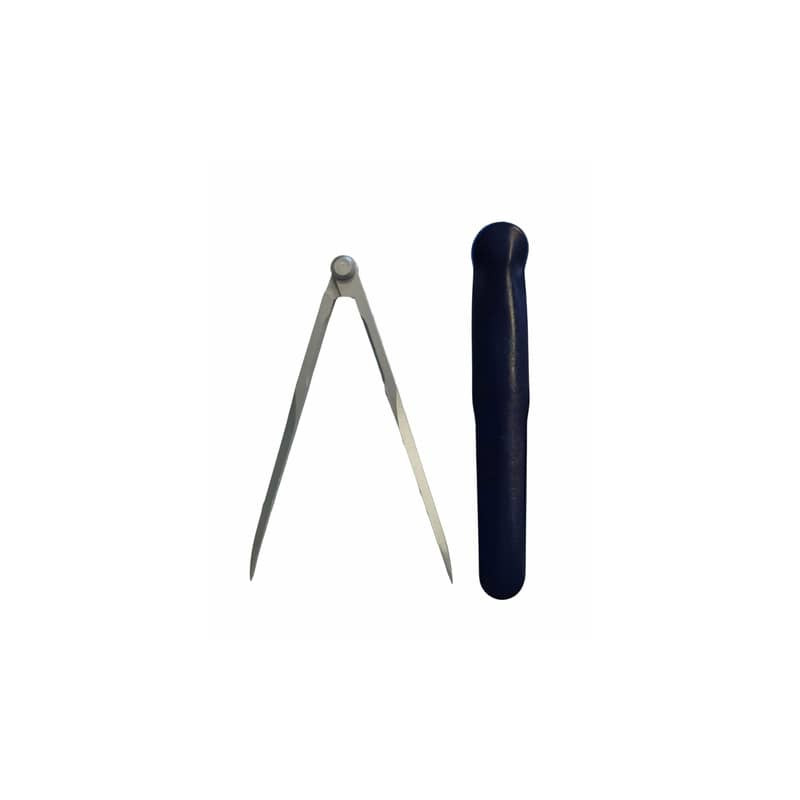 Compasso con asta snodabile, guida a cremagliera. Prodotto in ottone con rivestimento galvanico nichel-free. Lunghezza 140 mm, innesto diametro 3,5 mm. Ideale per cerchi con diametro da 1 > 380 mm. Astuccino ricambi mine e minuterie