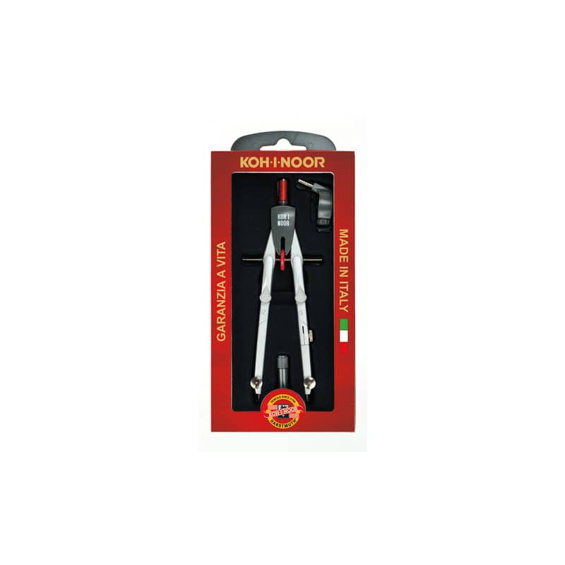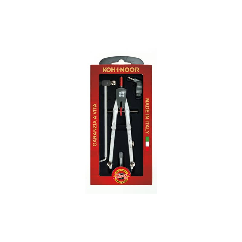 Compasso dotato di accessori per agevolare il disegno tecnico e permettere di tracciare archi e circonferenze in maniera precisa. Progettato per uso scolastico.