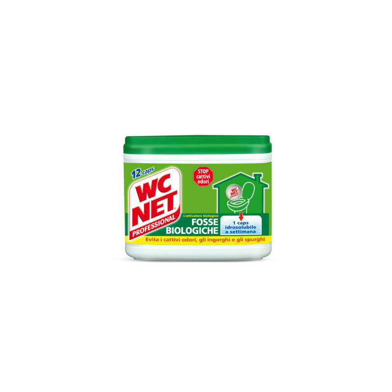 WC Net Fosse Biologiche è un bio-attivatore di fosse biologiche. Grazie alla sua nuova formula concentrata, potenzia l'azione degli enzimi e scioglie i rifiuti solidi prevenendo gli ingorghi. Si consiglia l'uso una volta a settimana: basta aprire il barattolo tirando la linguetta sul tappo e gettare una capsula nel WC, tirando subito l'acqua. In questo modo si evitano i cattivi odori e aiuta anche a evitare gli spurghi. Ha una formula 100% naturale. Confezione composta da 12 capsule idrosolubili.