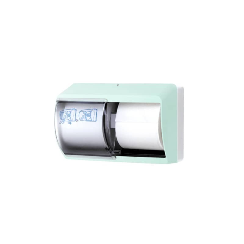Distributore mini di carta igienica jumbo versione ECOLINE BEEO. Altezza d’installazione consigliata: 70 cm, dal pavimento alla parte inferiore del distributore. Capacità - Ø massimo rotolo 20 cm- Ø minimo anima 4,2 cm, Profondità max 10 cm. Misure: H 27 cm - L 22,5 cm - P 12,5 cm. Materiale: PP e MasterBio. Colore verde opalino. Compatibile con i seguenti codici di carta igienica: 114400, 114387, 114391.