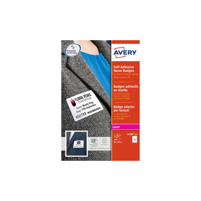 Vuoi una soluzione semplice e innovativa per creare badge professionali? La nostra gamma di badge adesivi in seta acetata per stampanti laser anche a colori, possono essere applicate direttamente sui tessuti e possono essere stampate o scritte a mano.Aderiscono all’abito senza clip o spille. Ideali per identificare i partecipanti a meeting, eventi e seminari, in modo pratico e veloce. Aderiscono perfettamente agli abiti, una volta rimossi non lasciano residui di colla.