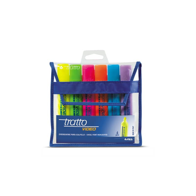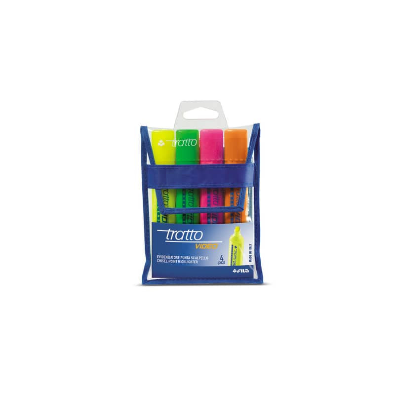 Evidenziatore Tratto Video in confezione assortita. Made in Italy, che illumina le parole con il suo tratto extra fluorescente.
