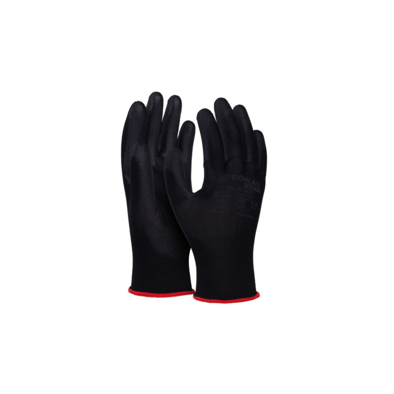 Guanti realizzati in maglia di poliestere di buona qualità di colore nero, spalmati di poliuretano nero nell'area di presa. Progettati per attività di assemblaggio, magazzino, meccanica, elettrotecnica, assistenza, verniciatura, riparazione, attività industriali, di giardinaggio e hobbistica. Spalmatura di poliuretano nero ad alta resistenza all'abrasione. Polsino elastico. Guanti protettivi per proteggere da danni meccanici. Cat: II. Conformità alle norme EN 388:2016+A1:2018 (4131X), EN ISO 21420:2020. Materiali: poliestere/poliuretano. Colore: nero. Confezione composta da 12 paia.