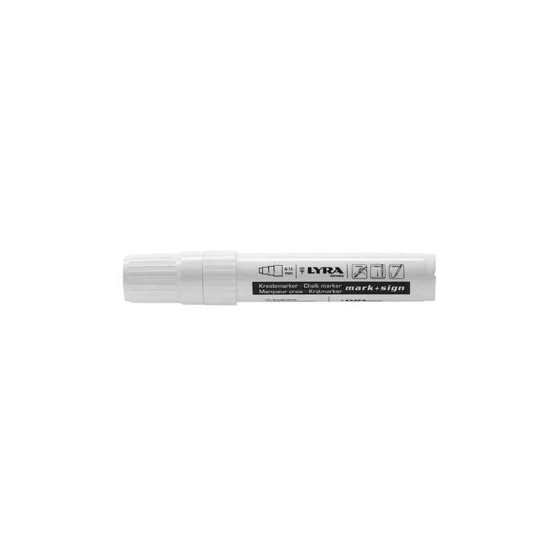 Ideale per scrivere su lavagne, superfici lisce e porose. Removibile con uno straccio asciutto da superfici lisce e con straccio umido da superfici porose. Disponibile in 2 punte: tonda 2/4 mm e piatta 8/15 mm. Colore bianco.