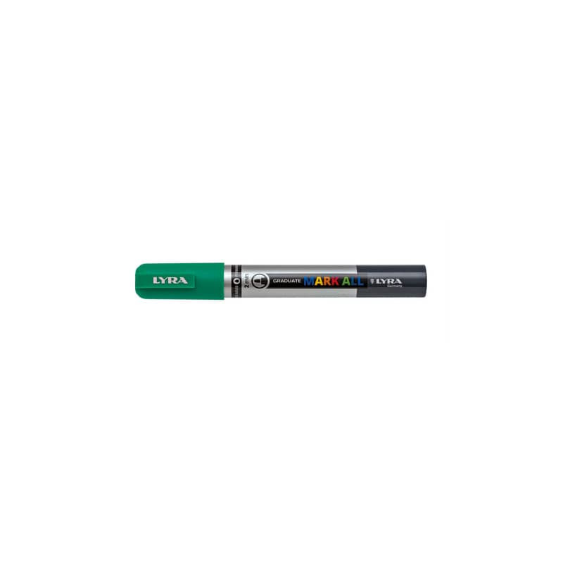 Lyra Graduate Mark All è il marcatore a tempera multisuperficie per decorare e colorare. La punta tonda da 2 mm è la best seller della linea, dedicata a creativi più o meno esperti. E' perfetta per creare con tratti più decisi grazie al pennino di altà qualità che rilascia una traccia corposa e carica di colore. Gli inchiostri sono coprenti e i colori sovrapponibili per una resa opaca che resiste alla luce e all'acqua