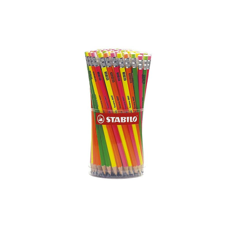 Matite in grafite Swano, fusto in 4 colori fluorescenti. Tratto 2,5 mm, con gommino. Confezione da 12 pezzi.