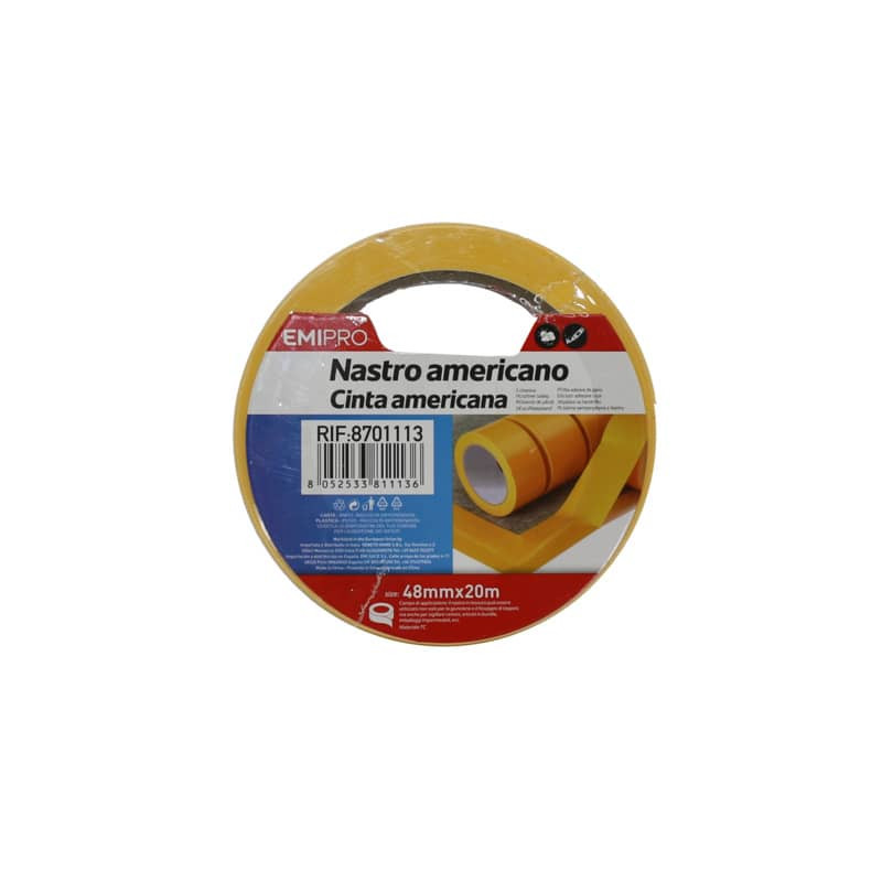 Nastro telato tipo americano per una sicura presa su qualsiasi materiale liscio. Dimensioni: 48 mm x 20 m.
