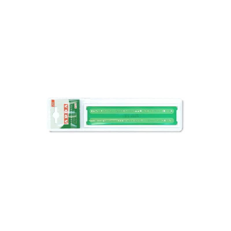 Altre caratteristiche: lettere, numeri e simboli conformi alle norme UNI. Altezza carattere mm 3,5. Materiale flessibile e di elevata resistenza. Adatti per scrivere con matita o penna a china. Cornice bianca
