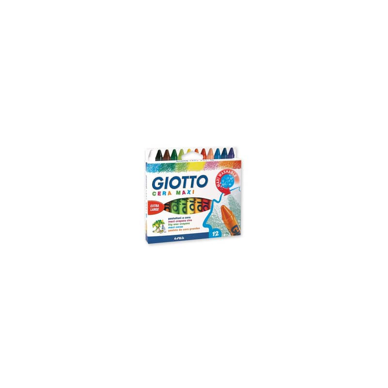 Pastelli a cera Giotto. Pastello a cera tondo, fascettato per singolo colore. Colori ricchi, vivaci e coprenti. L'ottima qualità delle cere utilizzate rende questi pastelli facili da stendere e perfetti per tutte le tecniche di coloritura, compreso il graffito. Formula lavabile da mani, tessuti e superfici non porose.