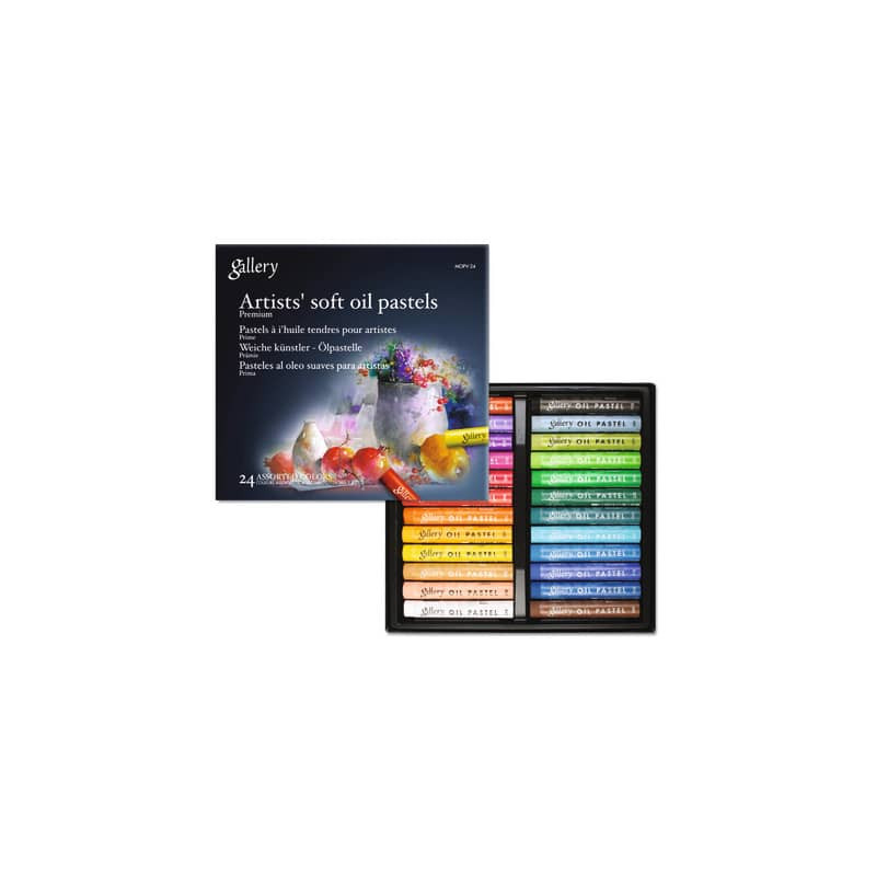 Pastelli ad olio fascettati per singolo colore. Diametro 11 mm, lunghezza 70 mm. Colori ricchi e coprenti. Si stendono con facilità. Più grandi dei normali pastelli ad olio per una grande riserva di colore. Astuccio appendibile da 24 colori assortiti.
