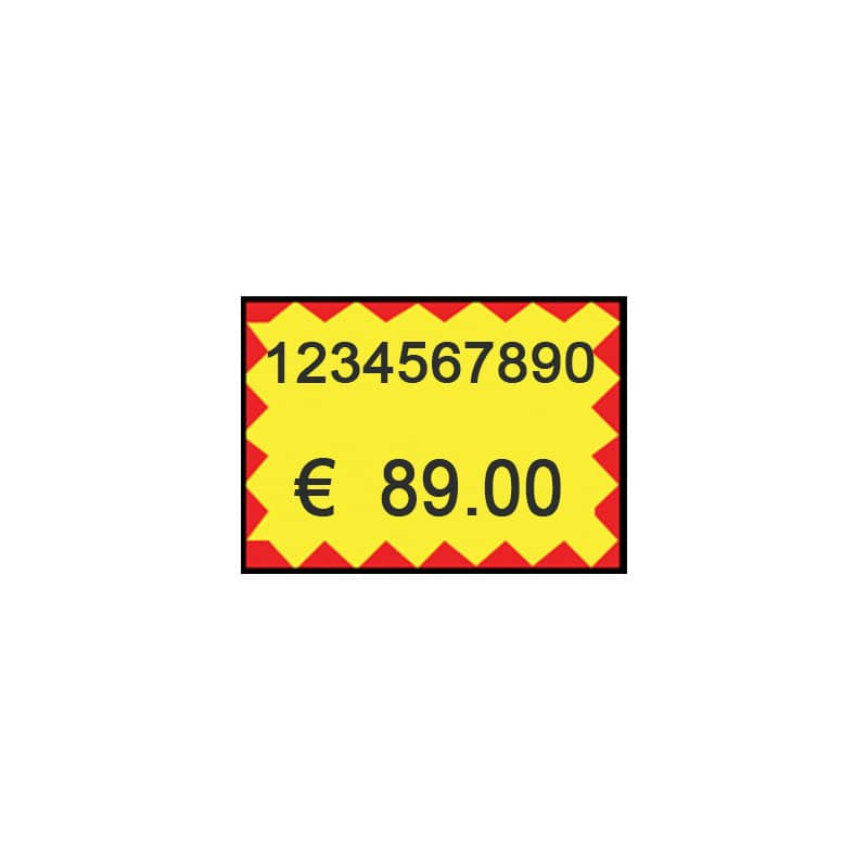 Etichette permanenti per prezzatrici formato 26x19 mm giallo rettangolare con stampa '' gialla contorno flash'' - rotolo da 600 etichette - blister 10 rotoli.