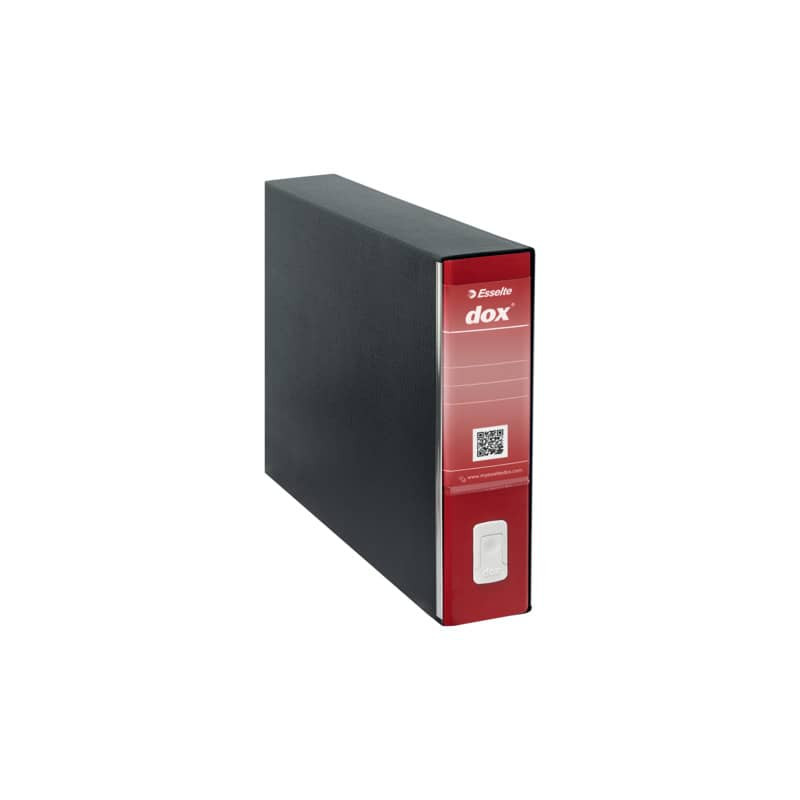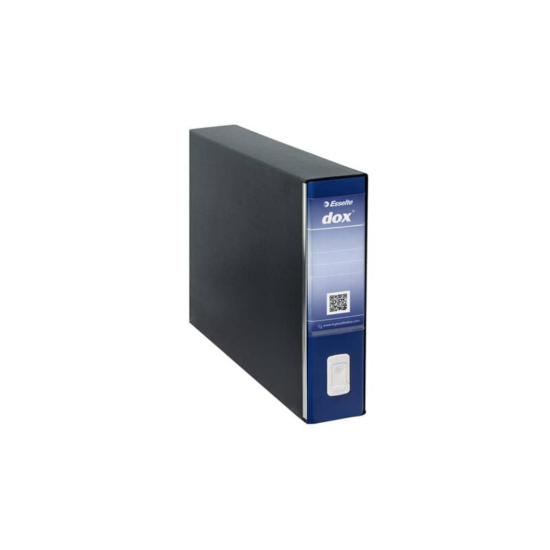 Il registratore a leva Dox 5 è rivestito con carta goffrata antimpronta e rifinito con paralati metallici alla base della plancia. E` dotato di un meccanismo a leva in acciaio nichelato con pressino, linguella di estrazione a scomparsa e portaetichette con etichetta reversibile. La custodia è rivestita con carta nera goffrata trattata antimpronta con interno nero. Ogni dox possiede al suo interno un volantino con il codice QR da applicare sull' etichetta e 3 semplici indicazioni per come scaricare la app su App Store e Google play Dorso: 5 cm. Modello: Protocollo.