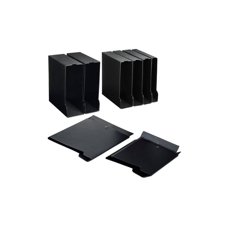 Custodie in cartone rivestito in PVC adatte a contenere tutti i raccoglitori A4 di Sei Rota. Facili da montare, proteggono i raccoglitori da polvere e umidità. Colore nero.