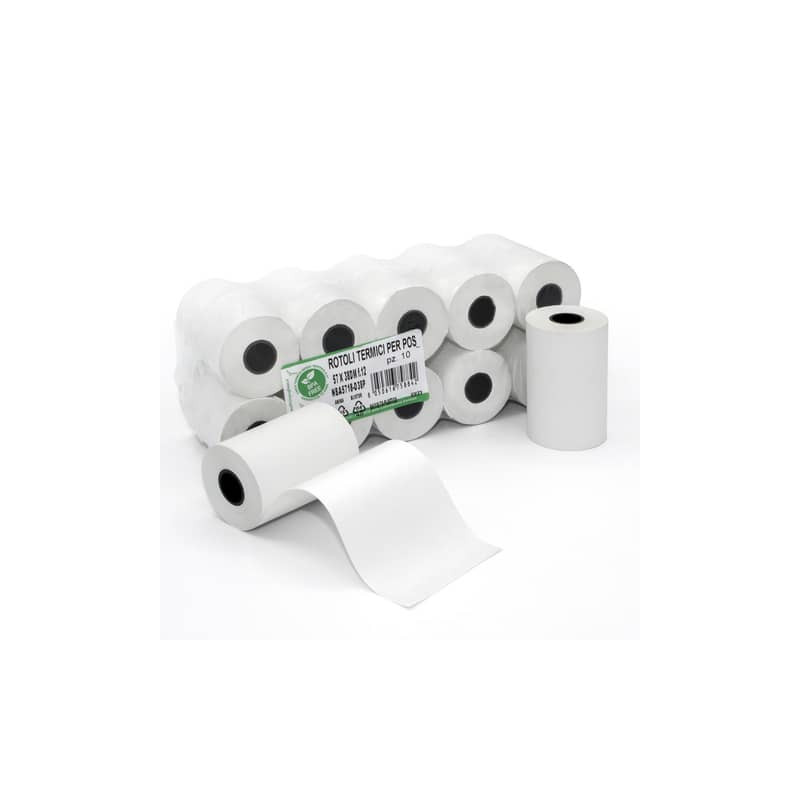 Rotoli in carta termica per POS disponibili in tutti i formati utilizzati da tutti i terminali per il pagamento online. La qualità della carta termica utilizzata, appositamente selezionata, assicura una perfetta stabilità delle scritte e la durata secondo la normativa vigente. Carta termica senza 'Bisfenolo A', garantita 10 anni.