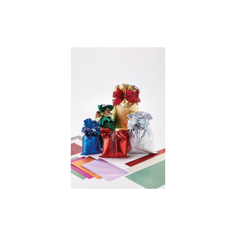 Buste colorate effetto metallizzato assortite in tinta unita. Ideali per il confezionamento dei regali. Formato 70 x 100 cm. Disponibili in confezione da 25 pezzi.