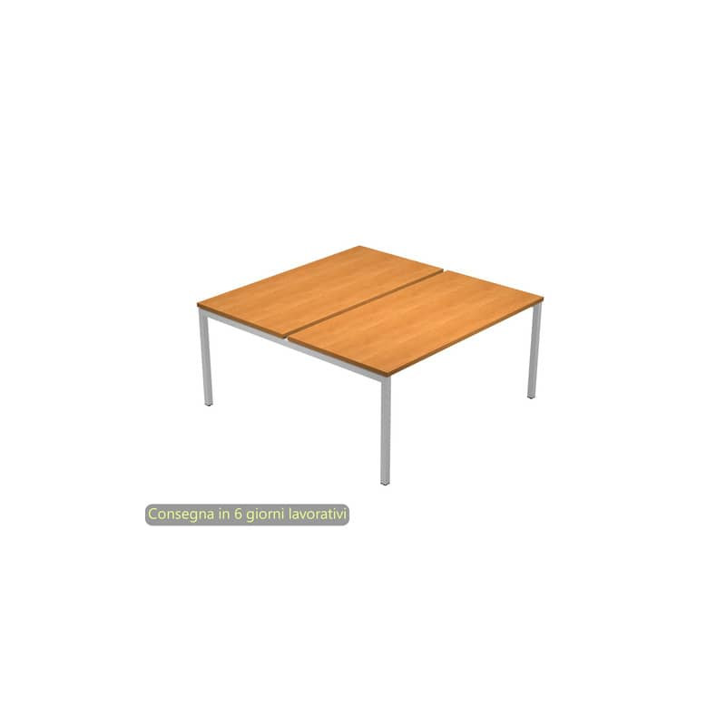 Coppia scrivanie fianchi met. sez. quadrata, cm 180 x 164 x 72,5 h, bianco. Scrivanie con dimensioni conformi alle normative sulla sicurezza dei posti di lavoro in ufficio. BORDATURA dei piani in ABS 3 mm ANTISHOCK ed assenza di spigoli vivi. Piani in melaminico antigraffio ed antiriflesso (sp. 22 mm). Fianchi a ponte in metallo verniciato a polveri epossidiche colore grigio alluminio (sezione 40x40 mm). Corredate di distanziali fra desktop e fianchi per il passaggio dei cavi. Traversa metallica. Gamma completa di allungo laterale reversibile destro o sinistro.