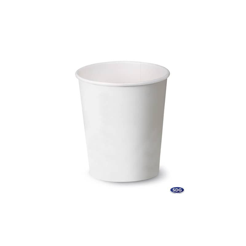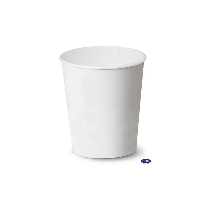 Bicchieri bianchi realizzati in cartoncino. Disponibili in varie capacità. Riciclabili nella carta e certificati ATICELCA. Confezione composta da 50 bicchieri.