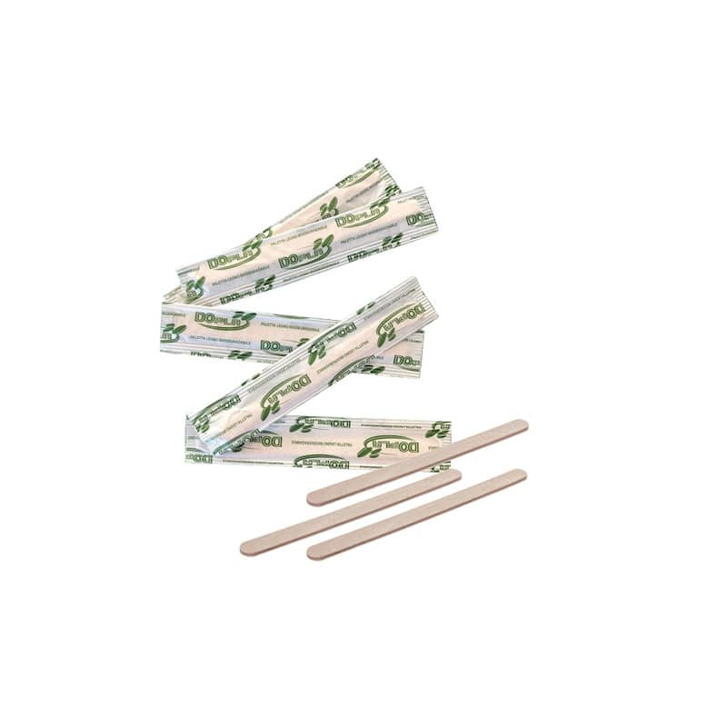 Miscelatori in legno di betulla colore Avana per bevande calde e fredde. Igieniche e pratiche. Imbustate singolarmente.