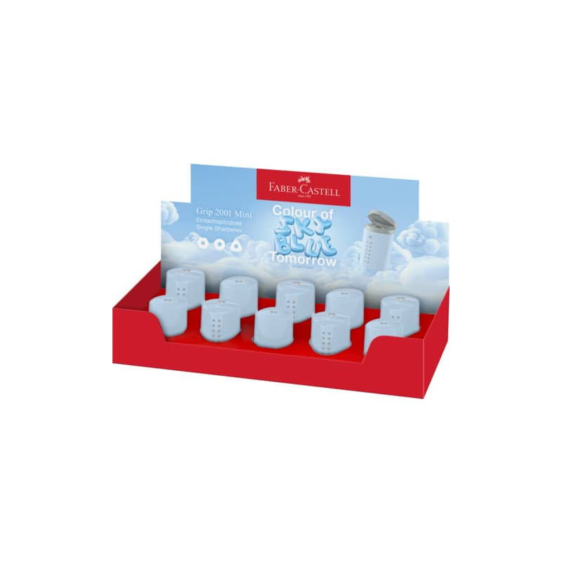 Temperamatite di dimensioni ridotte, perfetto da portare con sè. Forma triangolare con classico disegno Grip e vite di sicurezza. Dotato di temperamatite universale. La copertura del foro impedisce la fuoriuscita dei trucioli. Colore sky blue. Confezione da 10 pezzi.
